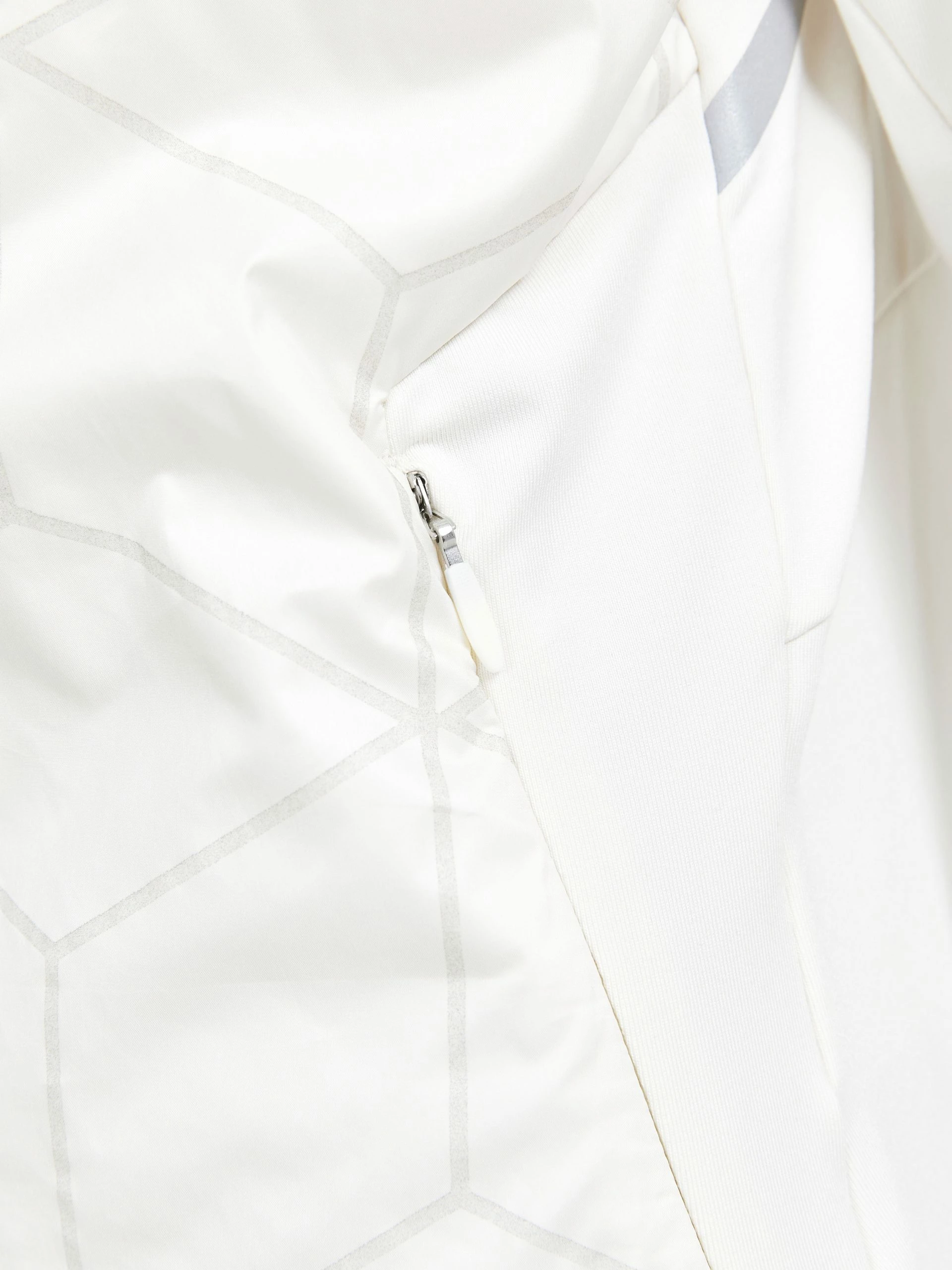 - Reflective print details at sleeves.