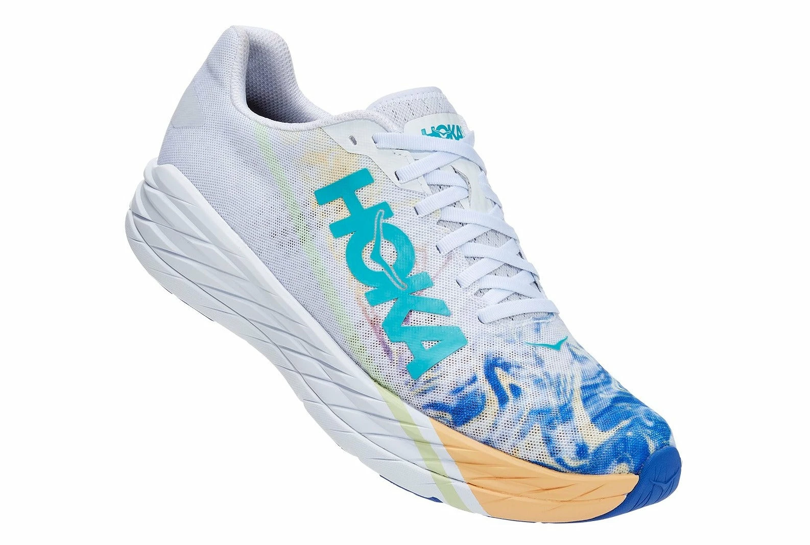 One of the most energetic shoes HOKA has launched to date, the Rocket X is an incredibly lightweight, insanely responsive racer geared for elite athletes. The lightest racing flat in the HOKA lineup, this all-speed shoe is engineered to launch off the line. Primed for shorter distances, the Rocket X utilizes the same responsive carbon-fiber plate as the Carbon X, delivering a fast, efficient, and propulsive ride. Built for race day, this speed dagger employs the lightest foam in HOKA history, a soft midsole carrier, breathable mesh upper, and lightweight, rubberized foam outsole that reduces weight. Speed weaponry at its best, adrenaline will be pumping when lacing up this impossibly fast race flat.