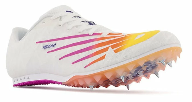 New Balance has revamped the MD500, a multi-distance track spike, with a new synthetic and mesh upper and updated collar construction. This design helps add superior comfort without sacrificing speed. Designed for the emerging track athlete, this spike helps you perform at a variety of distances and disciplines with a removable six-spike configuration.Â