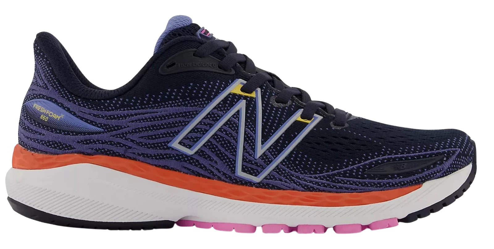 The 860v12 women’s running shoe is built for durable support and comfort. A Fresh Foam midsole provides super-soft cushioning while a dual-density medial post and strategic embroidery in the upper offer reliable support, mile after mile.