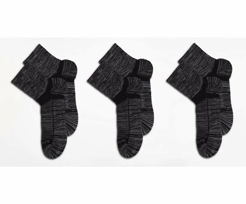The quarter-length Saucony Inferno running sock is constructed out of wool, allowing your feet to stay warm while other fabrics might not be up to the job. The natural wool fibers reduce chafing and allow the feet to breathe. The socks have a precise fit without any wiggle. The Engineered Arch Stability keeps the sock in the perfect spot. The RunDry ProWicking manages sweat so you can be comfortable on the go and on your feet.