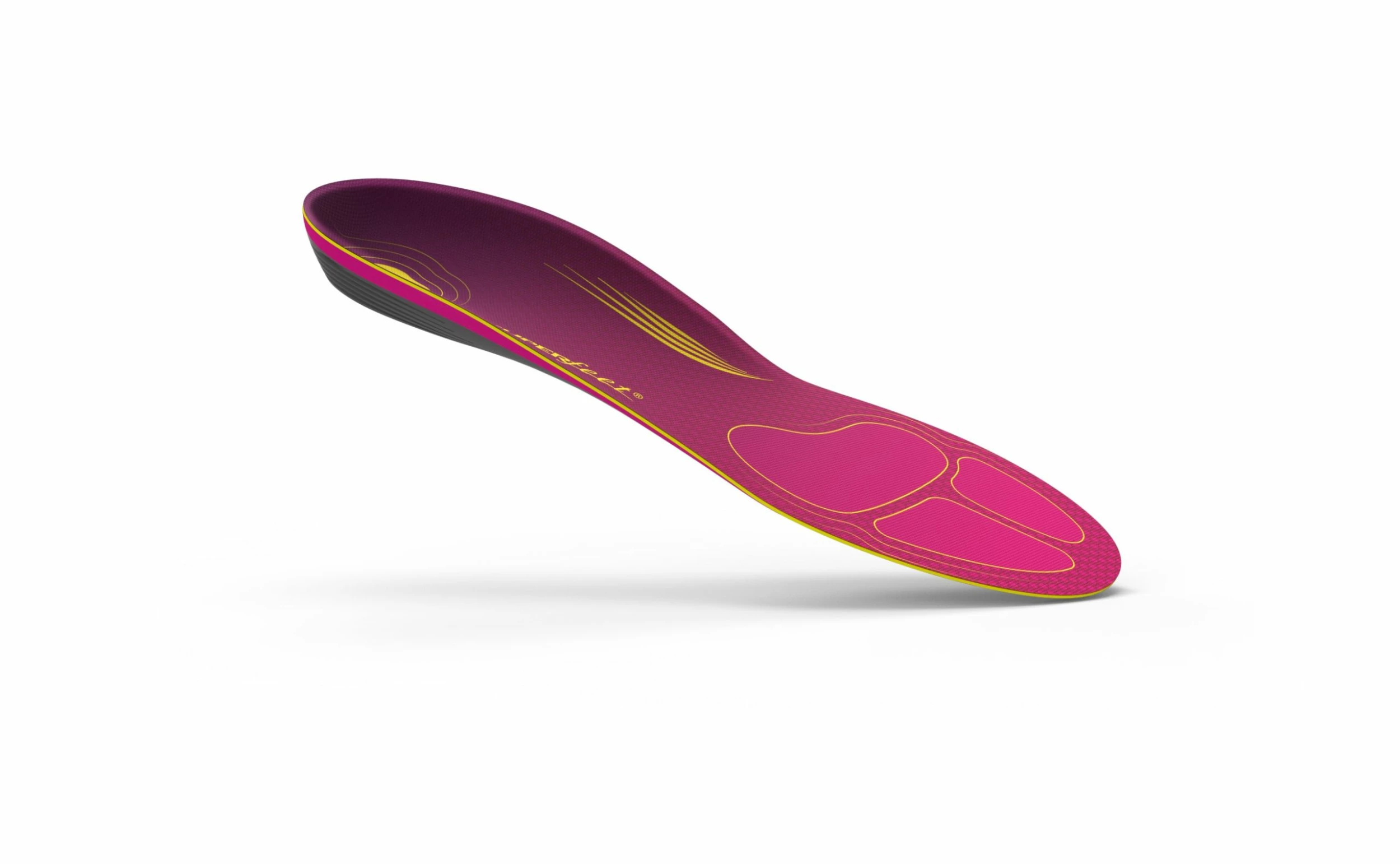 Designed using women-specific dimensions, Superfeet Women’s RUN insoles can help runners reduce foot fatigue while gaining efficiency. The Superfeet shape personalizes the shoe to your foot. The EVOLyte carbon fiber cap and AeroSpring Dual Comfort foam combine to deliver exceptional comfort and smooth and efficient energy transfer through your gait from foot strike to toe off.